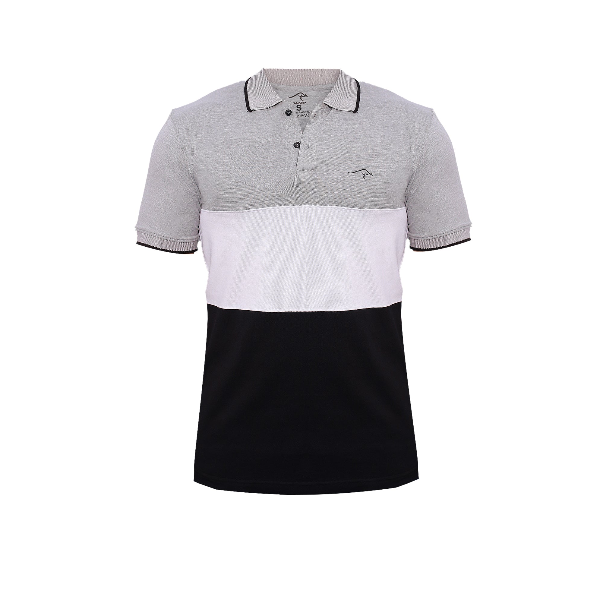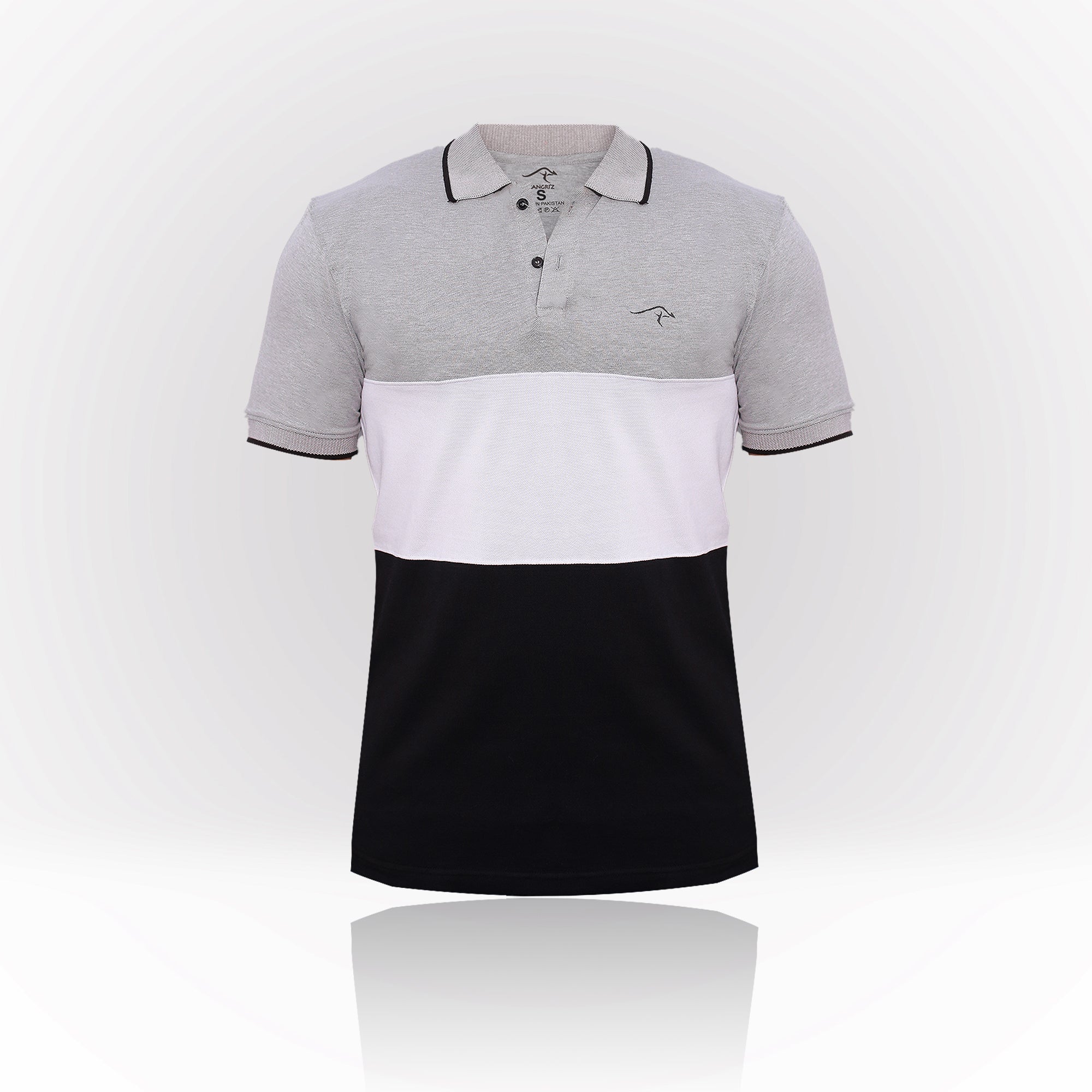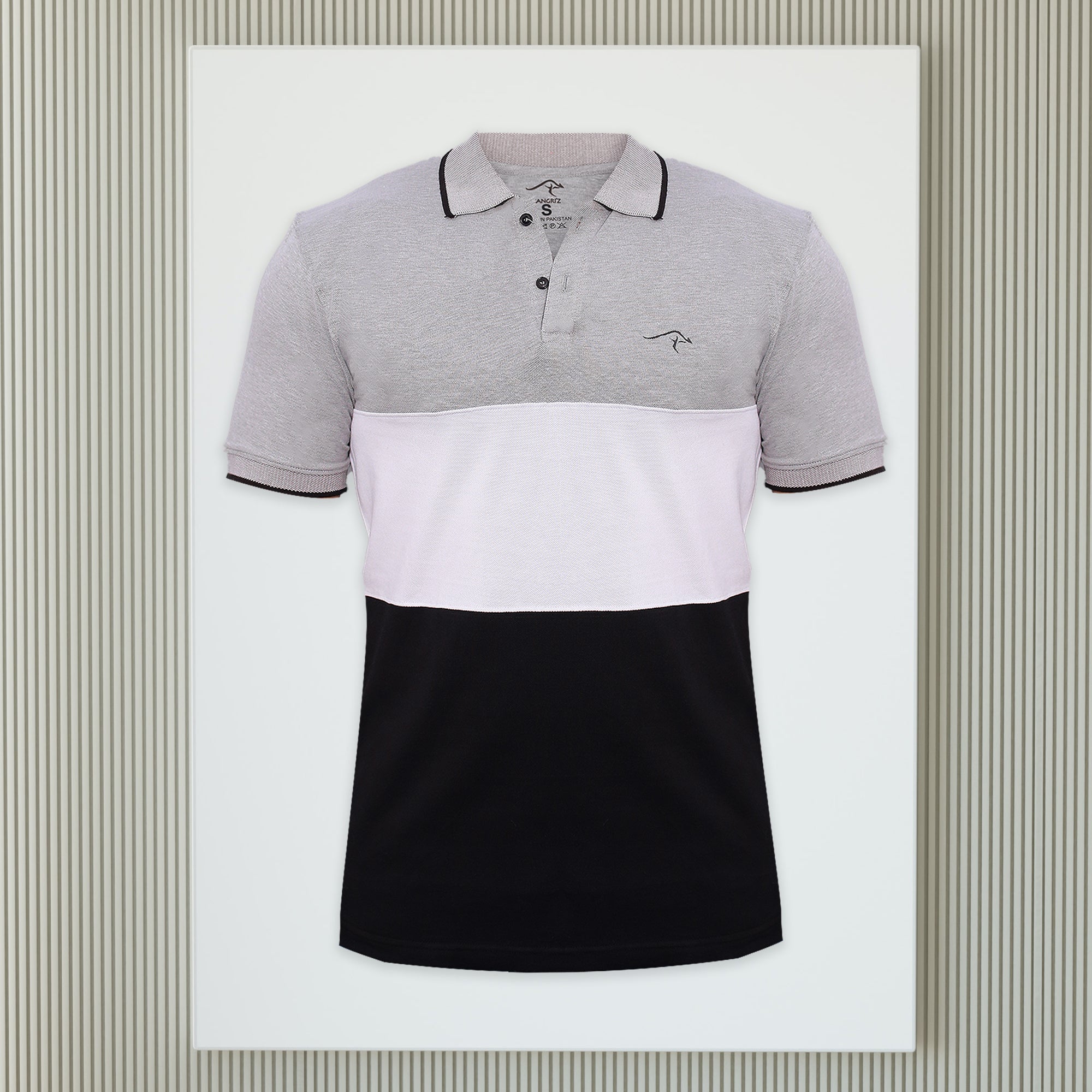 Upgrade your smart-casual wardrobe with this premium grey and black colorblock polo shirt, designed for a bold yet refined look. Featuring a clean horizontal panel design in light grey, white, and deep black, this polo creates a sharp contrast that adds modern character to a timeless silhouette.